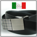 Oldani オルダニ レザーベルト[チェック柄Hバックル][ブラック 黒][牛革シボ加工]