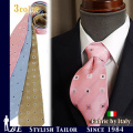 ◆ 特徴 スーツスタイルをエレガントに演出するイタリアの生地を使用した、日本製のシルクネクタイです。高級感の中に上品さが感じられ、スーツスタイルの首元や顔まわりを華やかに明るく演出します。日本製のシルクネクタイなのでプレゼントにもおすすめです。(たるみ調整糸つき) ◆ デザイン 柄:小紋柄(重スクエア) 色:サックス/ピンク/ベージュ ◆ 品質 シルク100%(イタリア生地を使用した、日本製) ◆ 生産国 Made in Japan(日本製) ◆ サイズ 大剣幅8.5cm、小剣4cm 全長:約145.5cm |